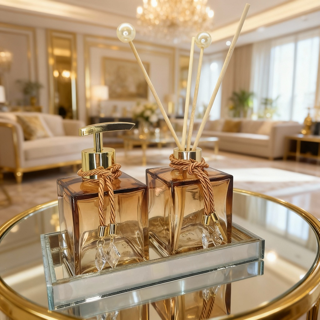 Cada peça do kit foi pensada para unir funcionalidade e estética. O acabamento impecável em âmbar premium valoriza a decoração e garante durabilidade, além de ser fácil de limpar no dia a dia. A bandeja organizadora mantém tudo no lugar, criando uma composição harmoniosa e sofisticada.